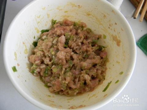 2. 馅料:将馅料剁碎,加入适量的调料,搅拌均匀。